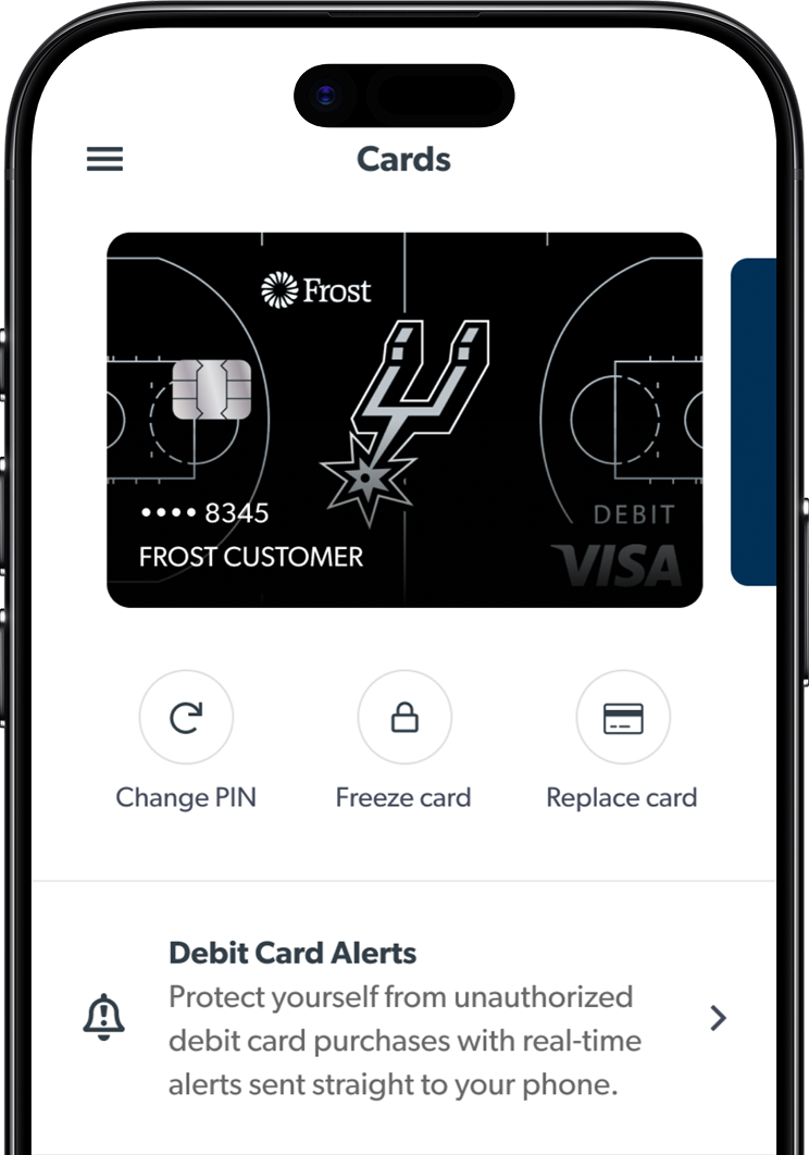 All it takes is a Frost personal checking account. Once your new card is ordered, it should arrive within 5-7 business days. Just be sure to activate it and keep your account funded to access your Spurs perks season after season.